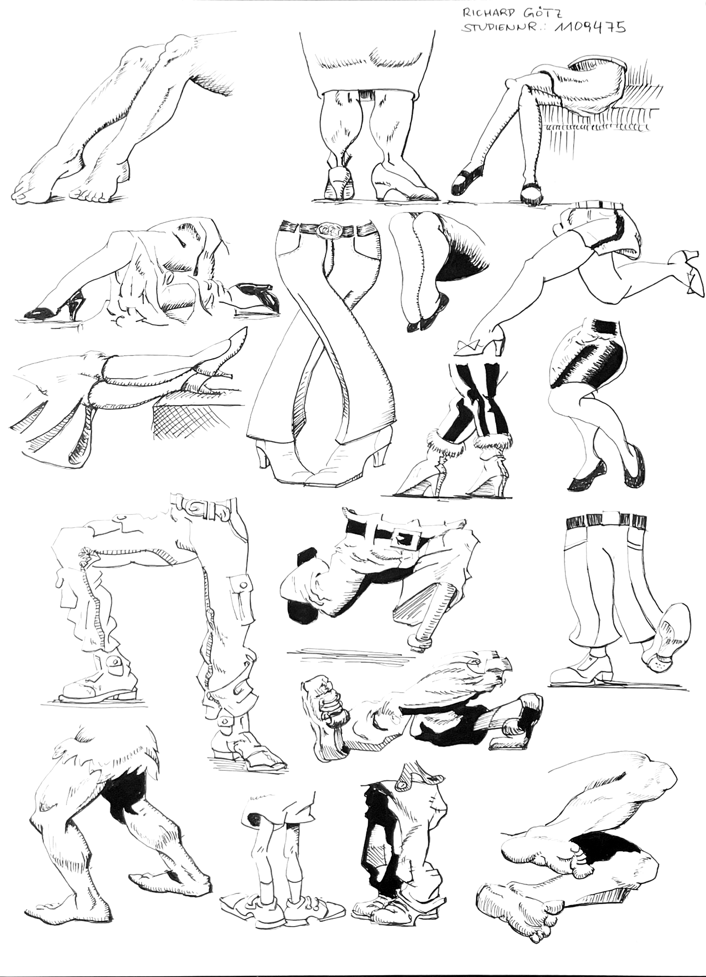 Ein Studenblatt zur Übung verschiedener Beine in verschiedenen Positionen.