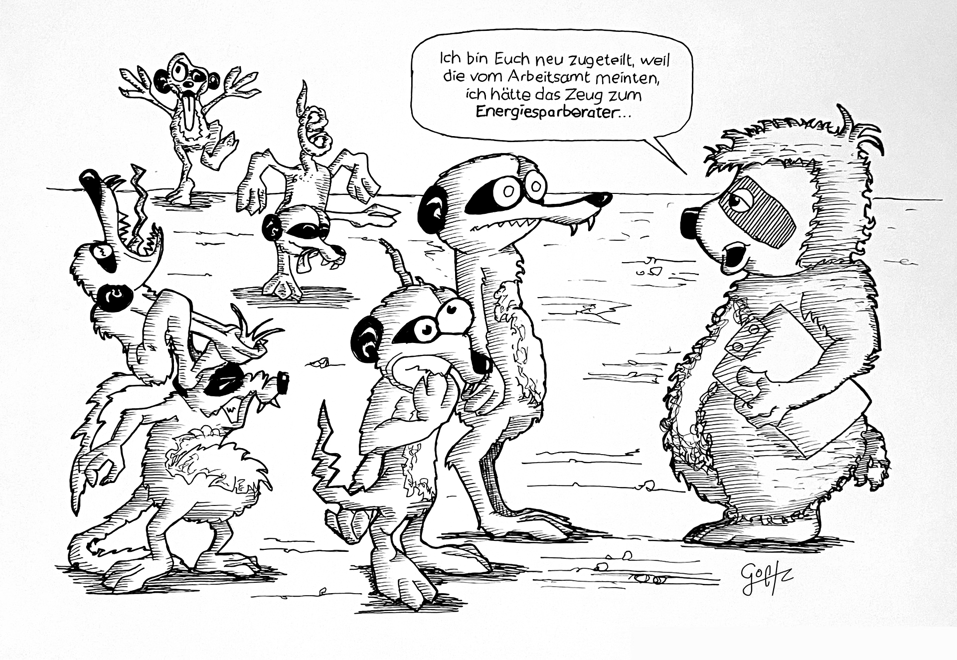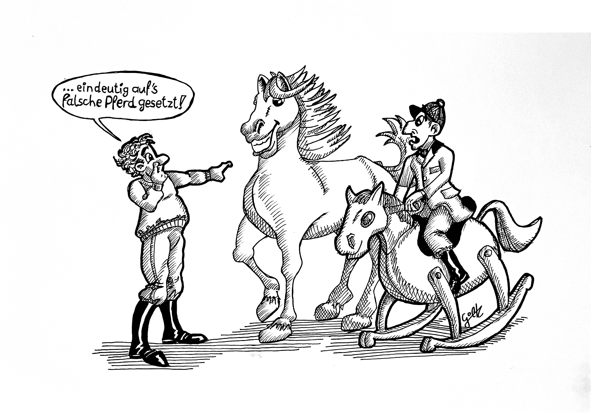 Die Kariatur ist mit Feder und Tusche gezeichnet.