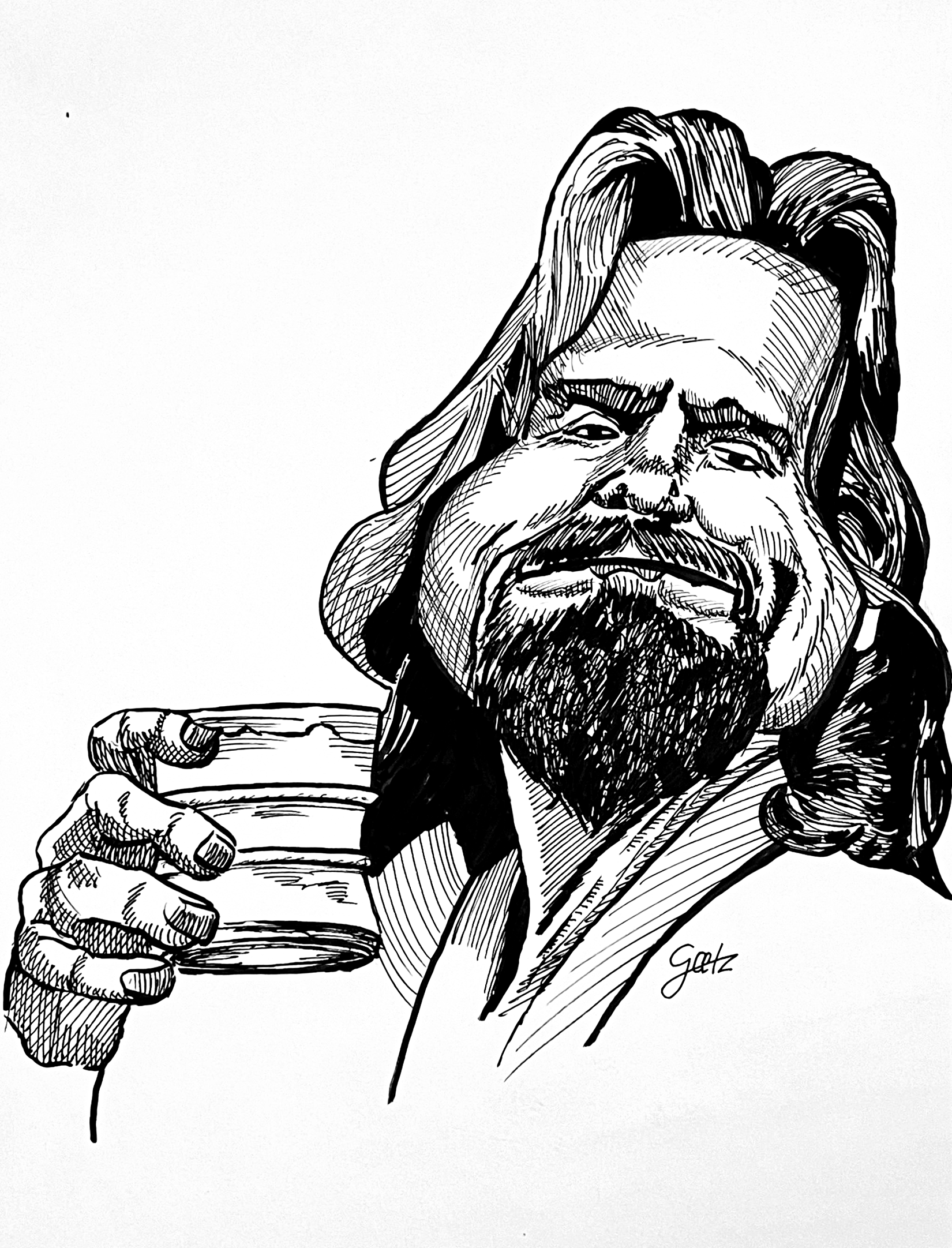 Jeff Bridges alias Jeffrey Lebowski mit seinem typischen White Russian in der Hand.