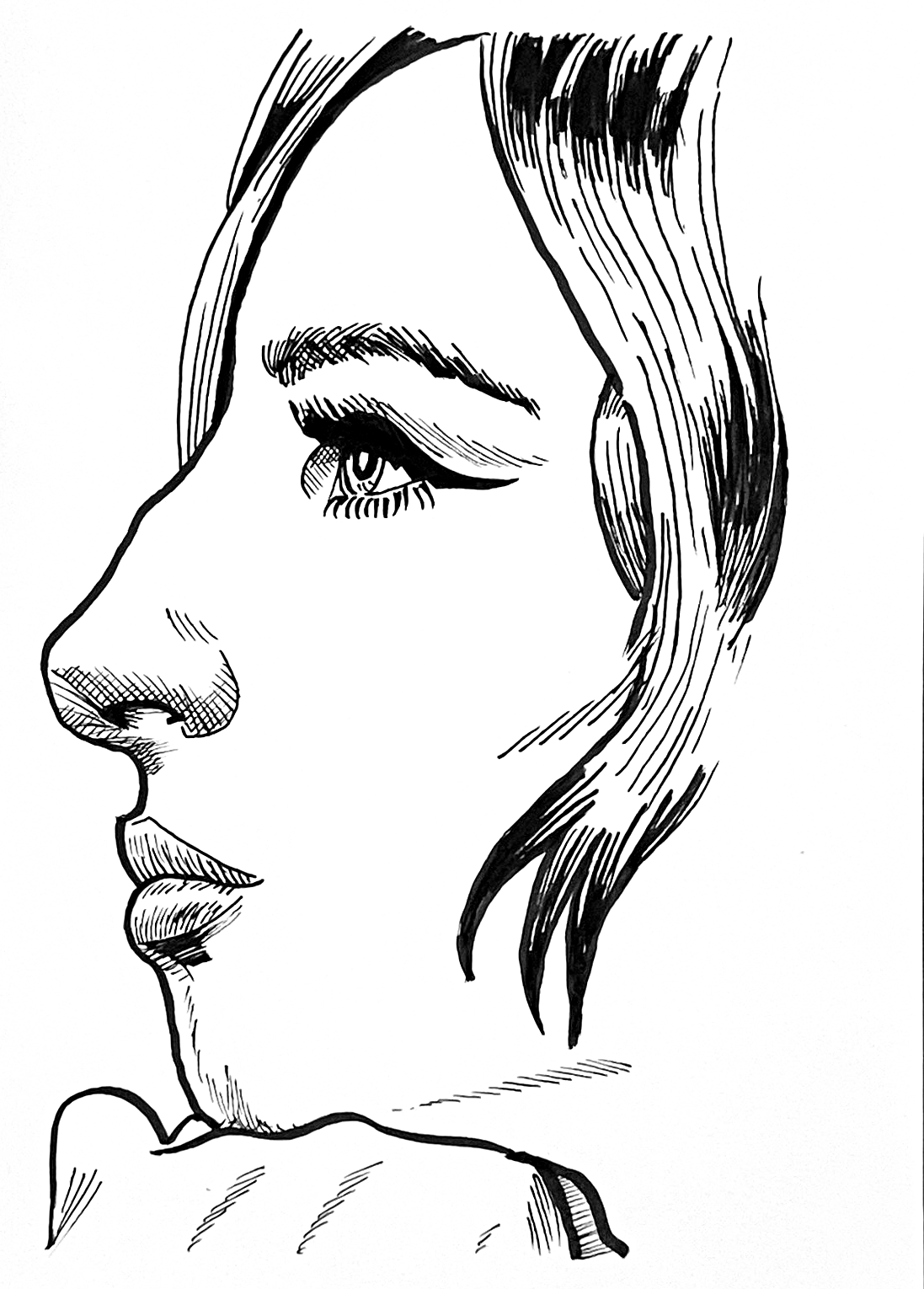 Begnadete Sängerin und Schauspielerin mit einem einzigartigen Profil. Das Funny Girl, die junge Streisand, wurde mit Feder und Tusche gezeichnet.