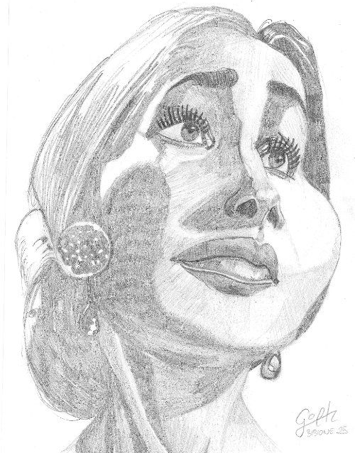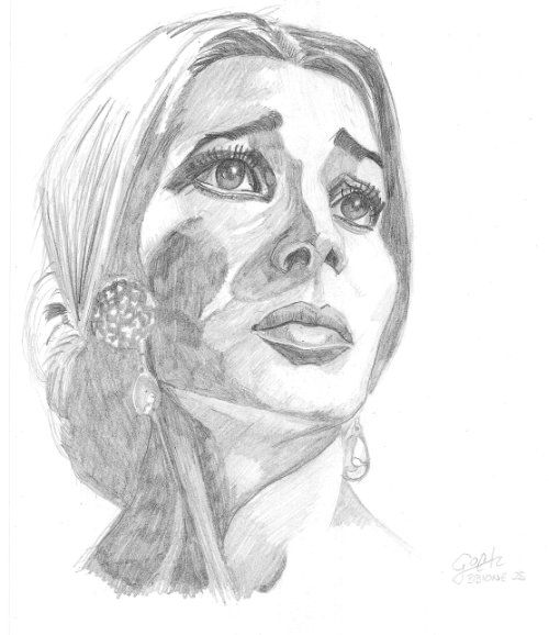 Nochmal die Callas in Bleistift. Hier ist die Portraitzeichnung, die der Karikatur vorausgeht.