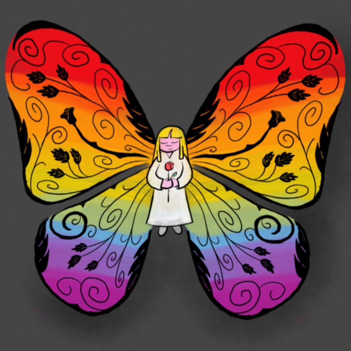 Für das Cover viel mir sofort der Schmetterling ein, der für mich die Seele verkörpert, die grundsätzlich eine fröhliche ist. darin das kleine Mädchen, gekleidet in der Farbe der Unschuld. Mit geschlossenen Augen und einer Rose in der Hand ist jedoch der Schmerz und die Trauer deutlich sichtbar.
